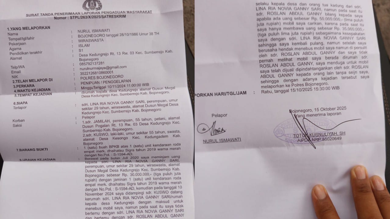 Kasus ini resmi dilaporkan dengan nomor STPL/263/X/2025/SATRESKRIM tertanggal 16 Oktober 2025. Nurul mengaku dirugikan secara materiil setelah mobil miliknya yang dijadikan jaminan pinjaman uang kepada seseorang berinisial LR, tak juga dikembalikan sesuai perjanjian.