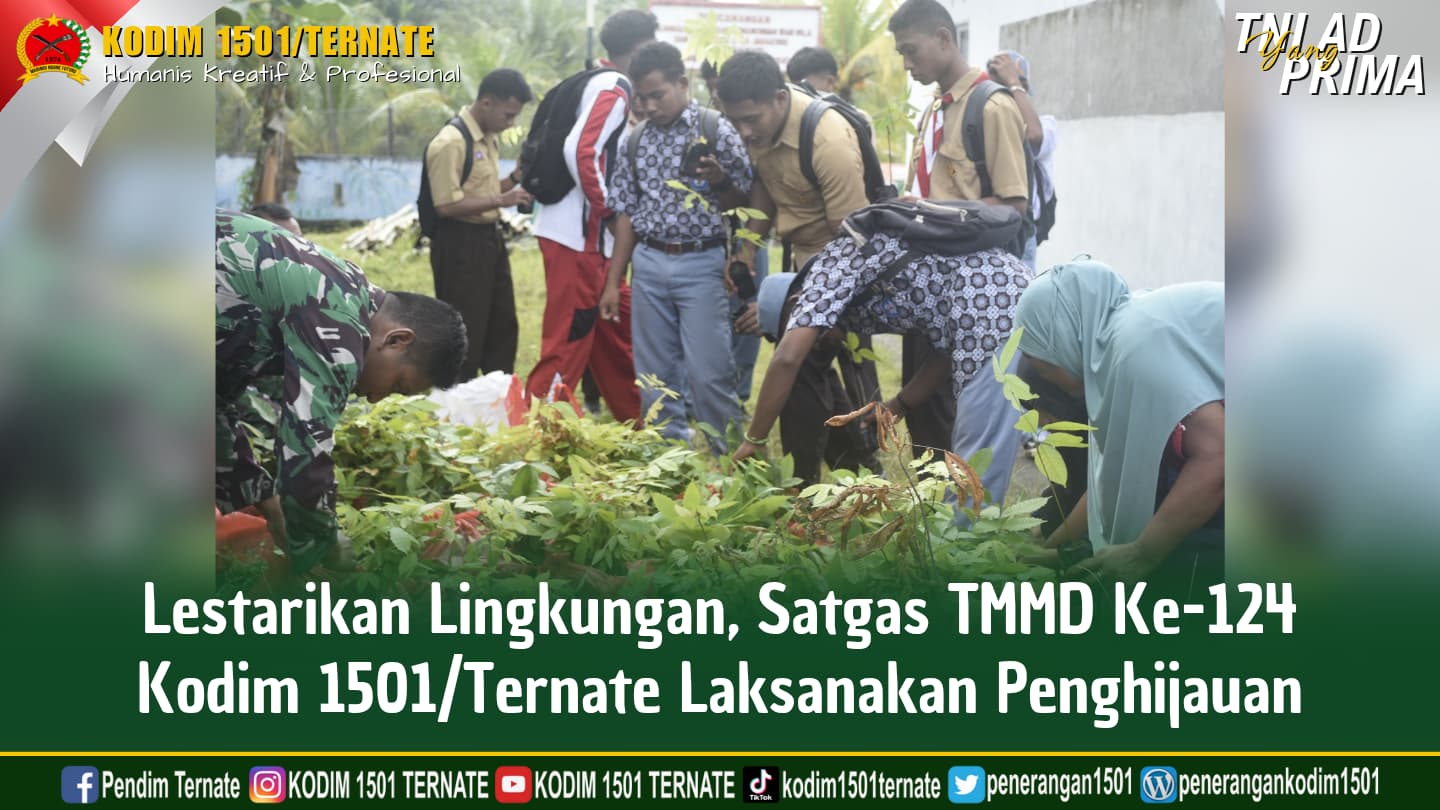 Pasiter Kodim 1501/Ternate, Kapten Inf Aga Galela dalam kesempatan tersebut menyampaikan, bahwa penanaman pohon dilaksanakan bersama sejumlah masyarakat di lokasi TMMD Ke-124 Kodim 1501/Ternate.