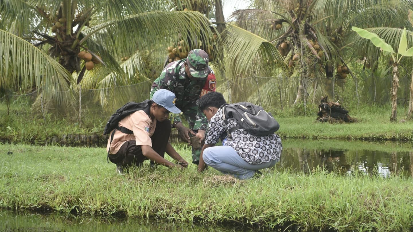 Rava News | Halbar – Satgas TMMD Ke-124 Kodim 1501/Ternate melaksanakan penghijauan dengan menanam berbagai macam tanaman pohon keras sebagai upaya pelestarian lingkungan bagi masyarakat di Desa Jarakore, Kecamatan Sahu, Kabupaten Halmahera Barat. Minggu (25/5/2025).