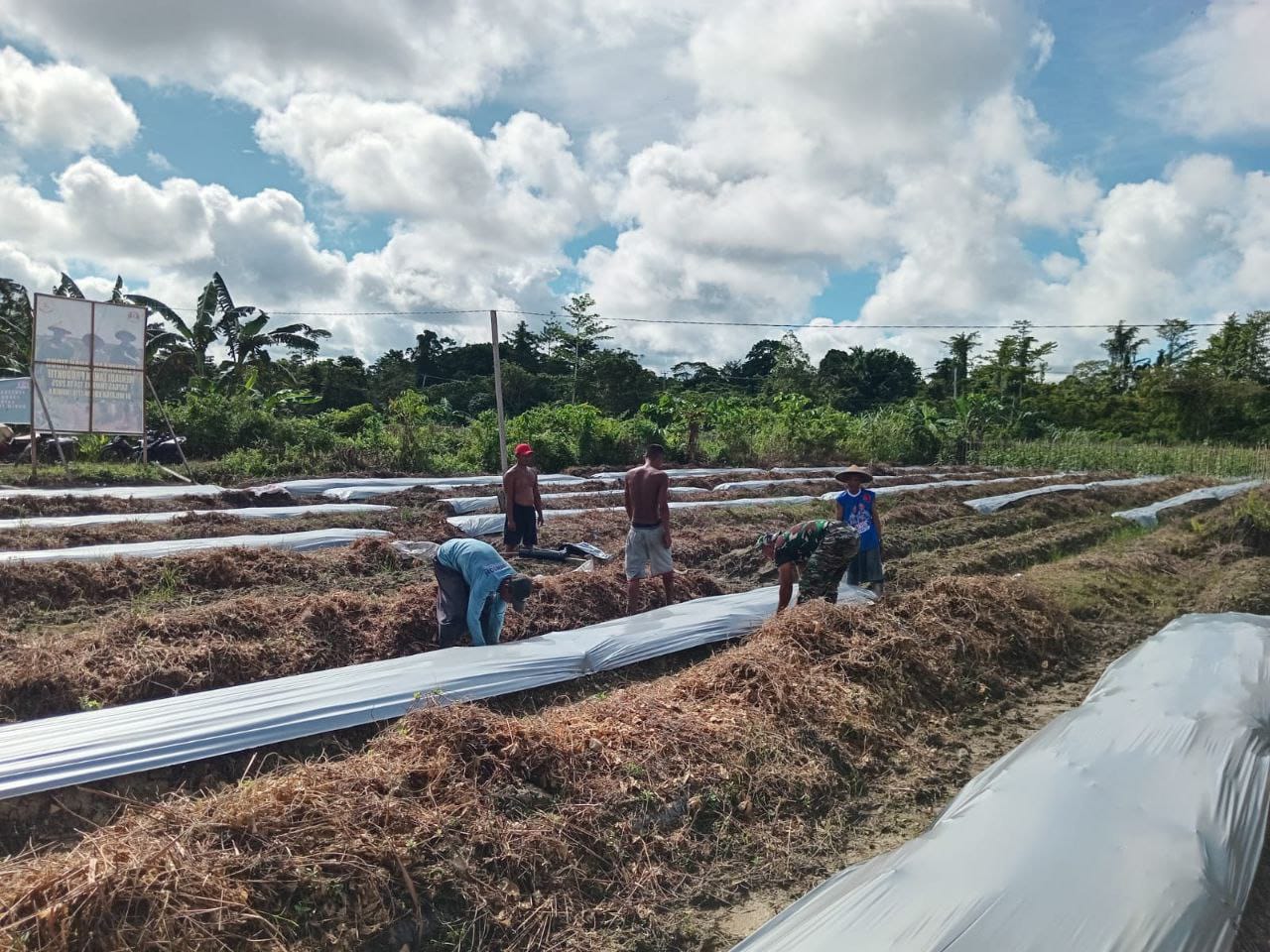 Dan SSK TMMD ke-124 Kodim 1710/Mimika Kapten Inf Belli G. Rachmad,.S.A.P mengatakan, salah satu program unggulan bapak Kasad yang dilaksanakan pada TMMD 124 Kodim 1710/Mimika adalah pembukaan lahan tidur menjadi lahan produktif, saat ini progresnya sudah sampai tahap pemasangan Plastik Mulsa sebelum penanaman.