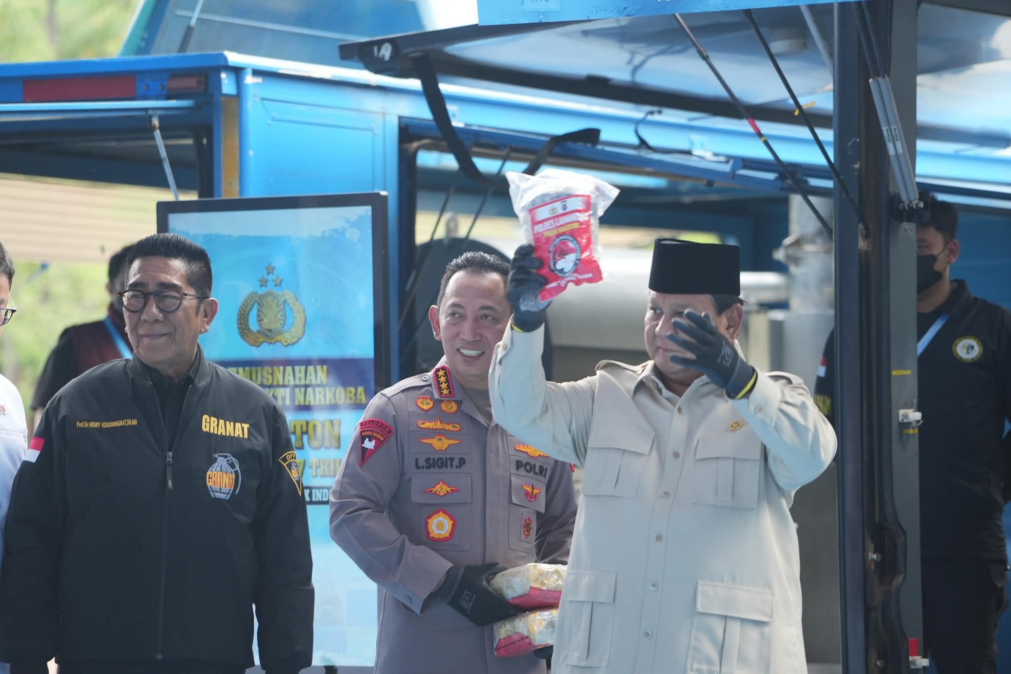 Setibanya di Lapangan Bhayangkara, Mabes Polri, Jakarta Selatan, Presiden meninjau secara langsung barang bukti hasil pengungkapan kasus narkoba sepanjang periode Oktober 2024 hingga Oktober 2025 tersebut. Presiden juga berkesempatan mengambil sebagian barang bukti untuk dilakukan uji sampel dan verifikasi oleh Tim Pusat Laboratorium Forensik Polri, sebelum seluruh barang bukti dimusnahkan.
